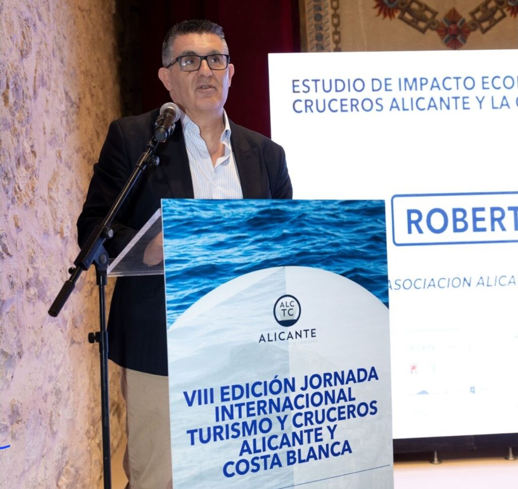 Uno de los momentos centrales de la jornada fue la intervención de Roberto Martínez, Director de la Asociación Alicante Costa Blanca Turismo y Cruceros, quien presentó el Avance del Estudio de Impacto Económico y Social 2025.