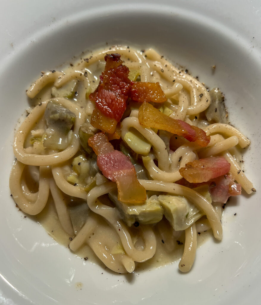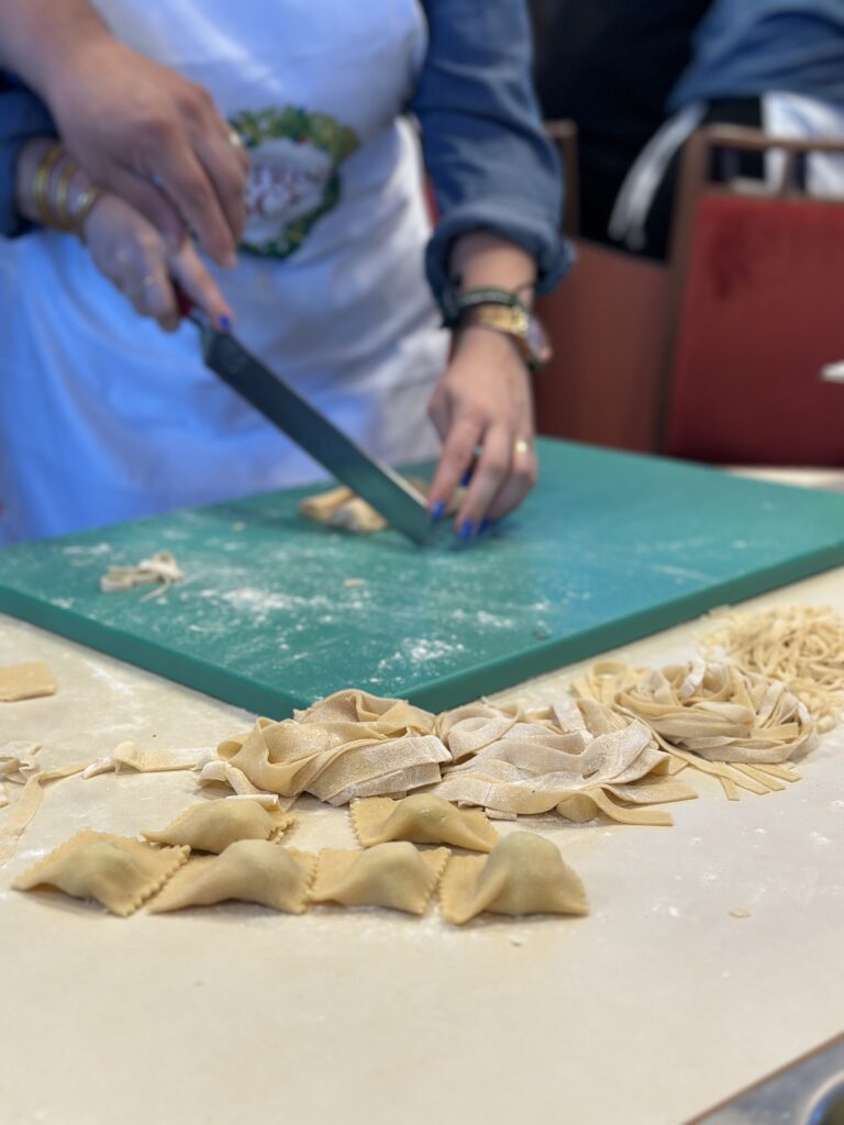La cocina como ritual de identidad Tras amanecer en el Cruise Roma, los asistentes participaron en un taller exclusivo de elaboración de pasta, dirigido por Cristian Borchi. No se trataba de una actividad más, sino de una inmersión práctica en la identidad cultural de la Toscana. Se elaboraron ravioli frescos rellenos de patata, aceite de oliva virgen extra y perejil, en un ejercicio de sencillez y sabor. Esta actividad fue organizada especialmente para el grupo y no forma parte de la oferta gastronómica habitual del buque.