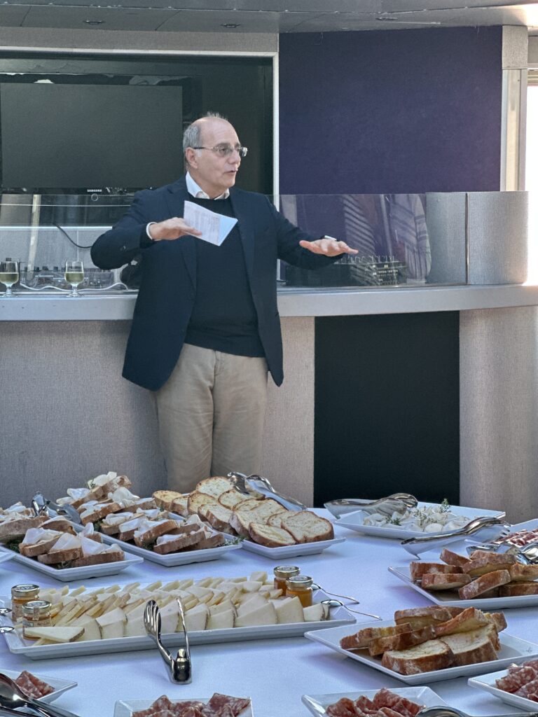 Al encuentro le siguió un aperitivo exclusivo que tuvo lugar en la zona VIP de la terminal de Grimaldi, en el puerto, elaborado por el reputado chef toscano Cristian Borchi, quien presentó una selección de productos típicos maridados con vinos de la región, elaborando in situ algunas especialidades toscanas.