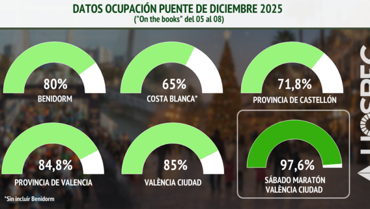 Comienza uno de los periodos de ocupación hotelera más interesantes también del periodo más bajo de la temporada turística marcado por el puente de la Constitución y de la Inmaculada. La posición de los días festivos en este calendario, hacen que el puente sea de sólo tres días, de viernes a lunes, pero la coincidencia de este periodo con la celebración de la Maratón de Valencia hace que la ocupación hotelera en la Comunidad Valenciana arroje datos más que interesantes.