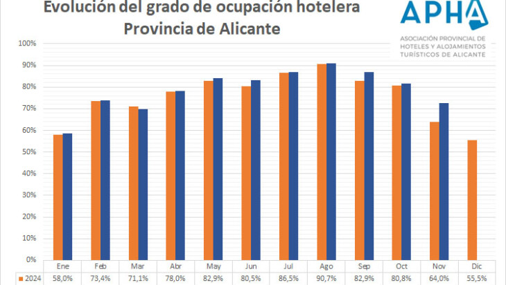 Noviembre ha tenido un comportamiento excepcionalmente positivo para el sector turístico de la provincia de Alicante, con unos datos de ocupación que han mejorado las previsiones y se sitúan notablemente por encima de lo habitual. Este buen dato coincide además con unos precios medios superiores a los de hace un año y unos ingresos por habitación disponible también al alza.