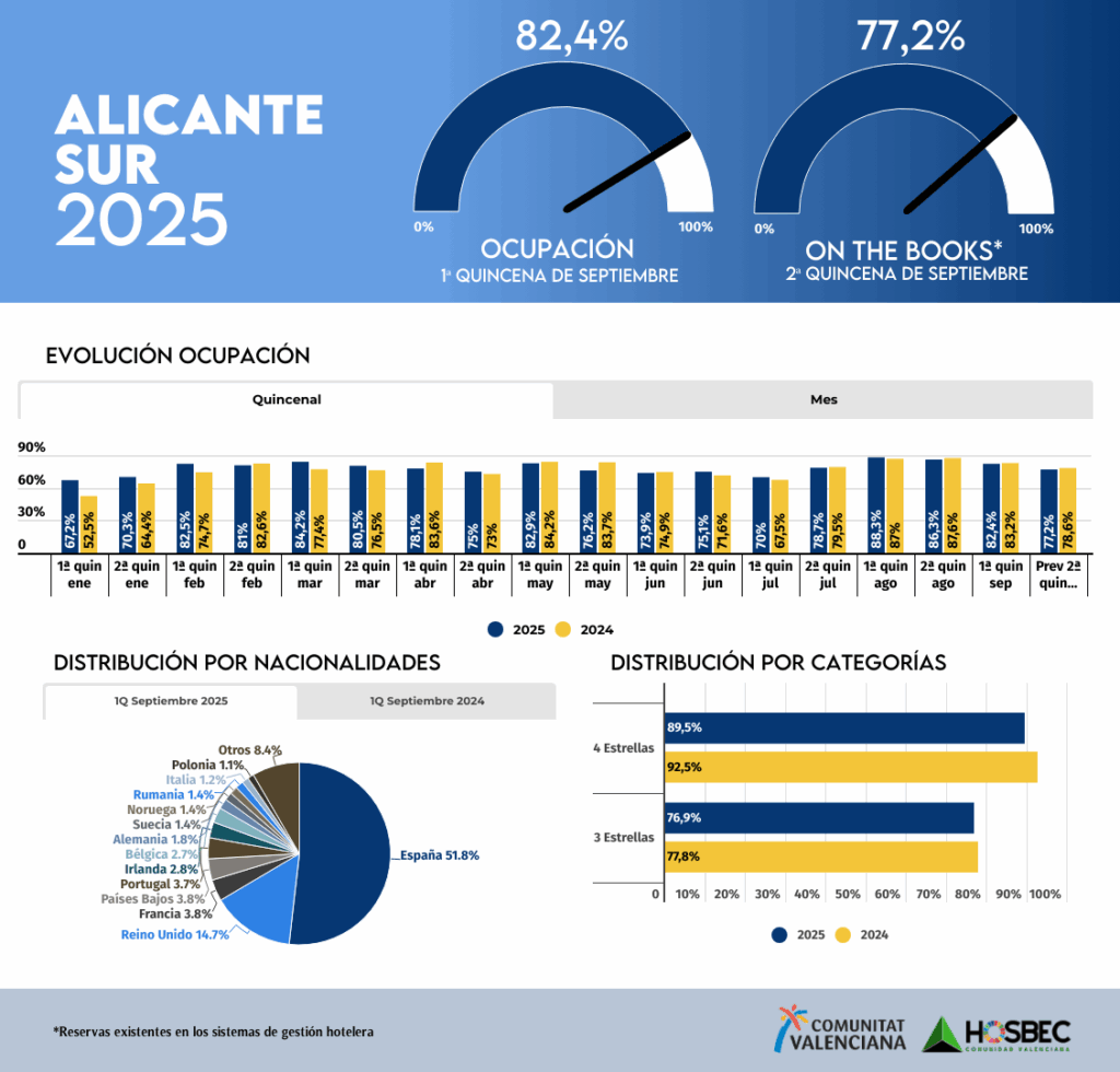 En conjunto, la Costa Blanca y su área sur reafirman que septiembre ya no es un mes residual, sino un periodo plenamente integrado en la temporada turística.