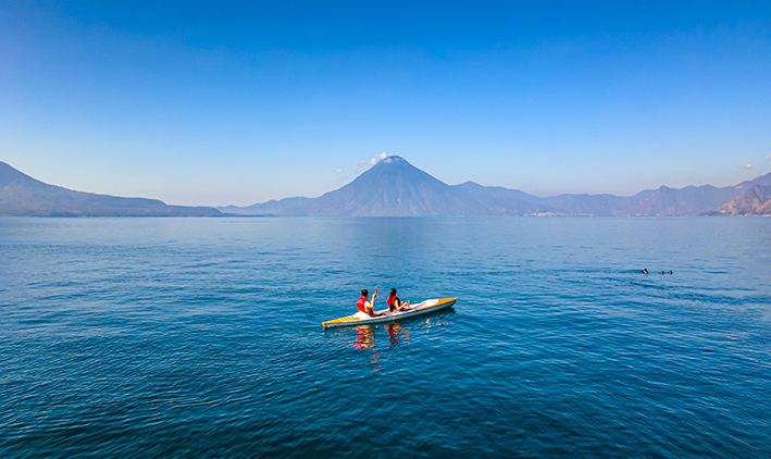 A menudo descrito como uno de los lagos más hermosos del mundo, rodeado por majestuosas montañas y pintorescos pueblos indígenas, el Lago Atitlán es un destino imprescindible para los aficionados al kayak y el paddleboard. Navegar por sus aguas significa descubrir calas escondidas, pueblos pesqueros y rincones para refrescarse con un chapuzón. En tierra, los amantes de la adrenalina pueden lanzarse en tirolina sobre el lago para disfrutar de vistas aéreas con los volcanes San Pedro, Tolimán y Atitlán como telón de fondo. Asimismo, se puede realizar la emblemática caminata a la Nariz del Indio, uno de los miradores más conocidos del país. En los alrededores del lago no hay que perderse la visita a los pintorescos pueblos indígenas, como San Juan La Laguna y Santiago Atitlán, perfectos para conocer la esencia de la cultura maya.