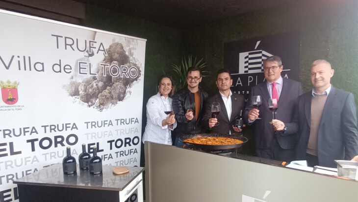 Con la presencia del alcalde de El Toro, José Arenes Vicente, y del director de Marketing y del sumiller de las Bodegas Vicente Gandía, Carlos García y Maximiliano Bao, respectivamente, se ha presentado la promoción, a través de un Showcooking, en el GastroMercat de El Corte Inglés Colón a cargo de la chef del restaurante Xanglot, Sandra Jorge, que ha preparado el plato “Arroz seco de pelota valenciana trufada, calabaza y sobrasada”. Los asistentes han podido degustar este producto protegido, maridado con el vino tinto Bobal Negro de las Bodegas Vicente Gandía, colaborador del evento. El alcalde de El Toro ha destacado que eventos como este permiten promocionar el cultivo de la trufa, fuente de riqueza de la villa de El Toro que a su vez sirve para fijar la población en las comarcas del interior de la Comunidad Valenciana.