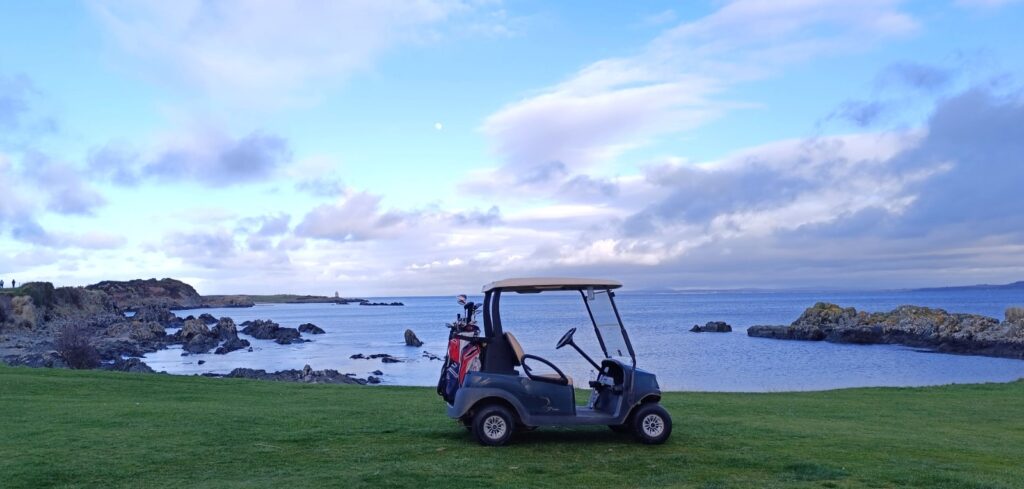 Nos dirigimos luego a Green Castle Golf Club, un campo menos conocido pero lleno de historia. Ubicado en la Ruta de los Castillos Desaparecidos, aquí se encuentran las ruinas de antiguas fortalezas medievales que alguna vez dominaron la costa. Jugar en este campo es como mezclar golf con arqueología, ya que en algunos hoyos es posible ver los restos de castillos que han sucumbido al tiempo y la erosión.