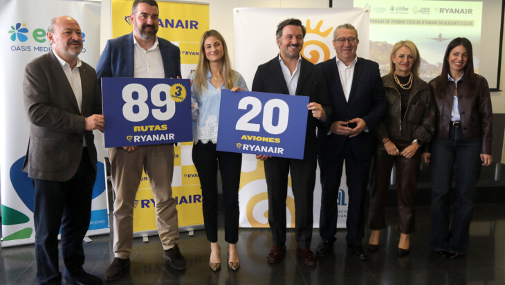 Según ha anunciado Ryanair, la compañía basará dos nuevos aviones en el Aeropuerto Alicante-Elche Miguel Hernández hasta alcanzar una veintena de unidades de su flota en la terminal alicantina. Prevé, asimismo, un total de 580 vuelos semanales para la temporada de verano 2026.