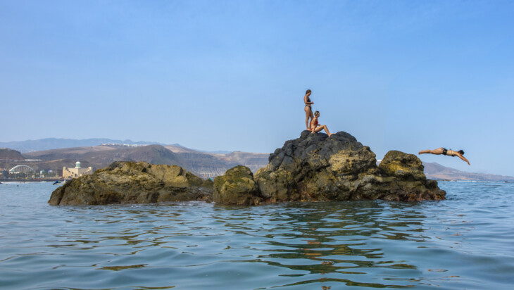Si El Confital dispone del mejor atardecer del destino, La Laja puede presumir de tener el mejor amanecer, ya que está orientada hacia el este. Y aunque pueda parecer mentira, sentarse en la arena negra a ver salir el sol no es uno de los planes más sobresalientes que ofrece, ya que esta playa de más de un kilómetro tiene las únicas piscinas naturales de la ciudad que permiten un baño relajado a pocos minutos del distrito de Vegueta. Por eso, es la mejor playa de Las Palmas de Gran Canaria para relajarse y no pensar en nada o simplemente, dar un paseo tranquilo. Caminando por La Laja, es imposible no fijarse en la escultura de Tritón, que con la mano derecha señala la ciudad, mientras con la izquierda, hace sonar una caracola de mar.