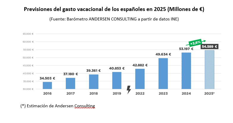 La firma de consultoría y servicios profesionales Andersen Consulting (antes BRAINTRUST), líder en el sector turístico, ha emitido un nuevo informe de su Barómetro Turístico y anuncia un nuevo récord de los turistas españoles en su gasto de vacaciones.