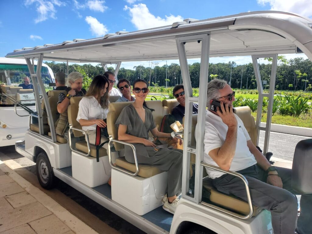 El grupo de Medios Españoles visita el Hotel Grupo Mundo Maya Tulúm 4*, uno de los siete hoteles que el grupo posee, conectados ahora con el Tren Maya. Éste se encuentra en el Parque del Jaguar, una reserva natural donde se encuentra también el Yacimiento Arqueológico de Tulúm. La preservación de la naturaleza o de yacimientos arqueológicos es uno de los objetivos turísticos que el Grupo Mundo Maya quiere promover entre el viajero internacional en los cinco estados: Quintana Roo, Yucatán, Chiapas y Campeche.