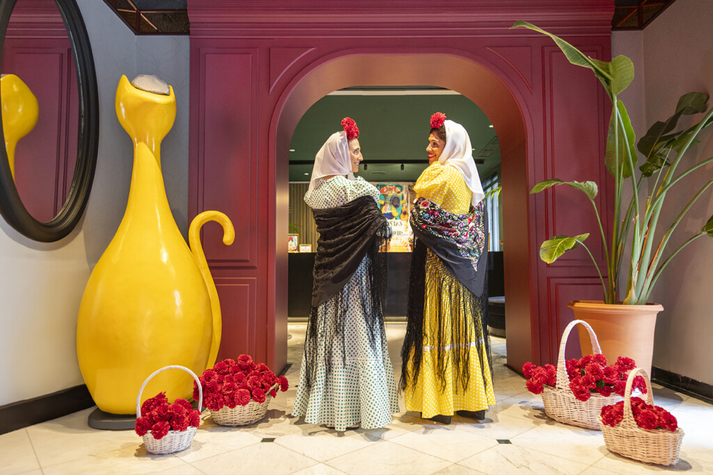 Para dar la bienvenida a los huéspedes, desde el inicio del mes de mayo, la fachada del hotel se vestirá de fiesta con una cascada de claveles, mientras que numerosos mantones de manila y cestas decorativas colgarán desde sus balcones para recrear la atmósfera de las tradicionales verbenas.