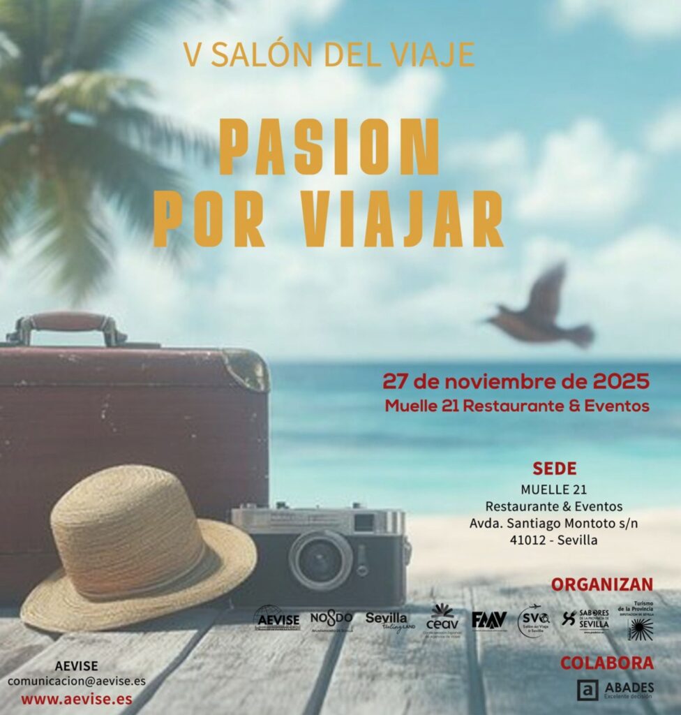 Sevilla se prepara para recibir el próximo jueves 27 de noviembre de 2025 el V Salón del Viaje, un encuentro profesional que reunirá a unos 150 agentes de viajes de toda la provincia y a expertos del sector turístico. El evento tendrá lugar en Muelle 21, de 09:00 a 19:00 horas, y está organizado por AEVISE junto a Turismo de Sevilla, Prodetur, CEAV y FAAV, con el apoyo de Abades. El Salón del Viaje pone en valor la importancia creciente de las agencias de viajes dentro del sector turístico, que, lejos de estar en declive, están más activas y necesarias que nunca. La jornada abordará cómo adaptarse a los cambios del sector, destacando el canal online, la digitalización y la aplicación de la inteligencia artificial en la gestión y venta de viajes.