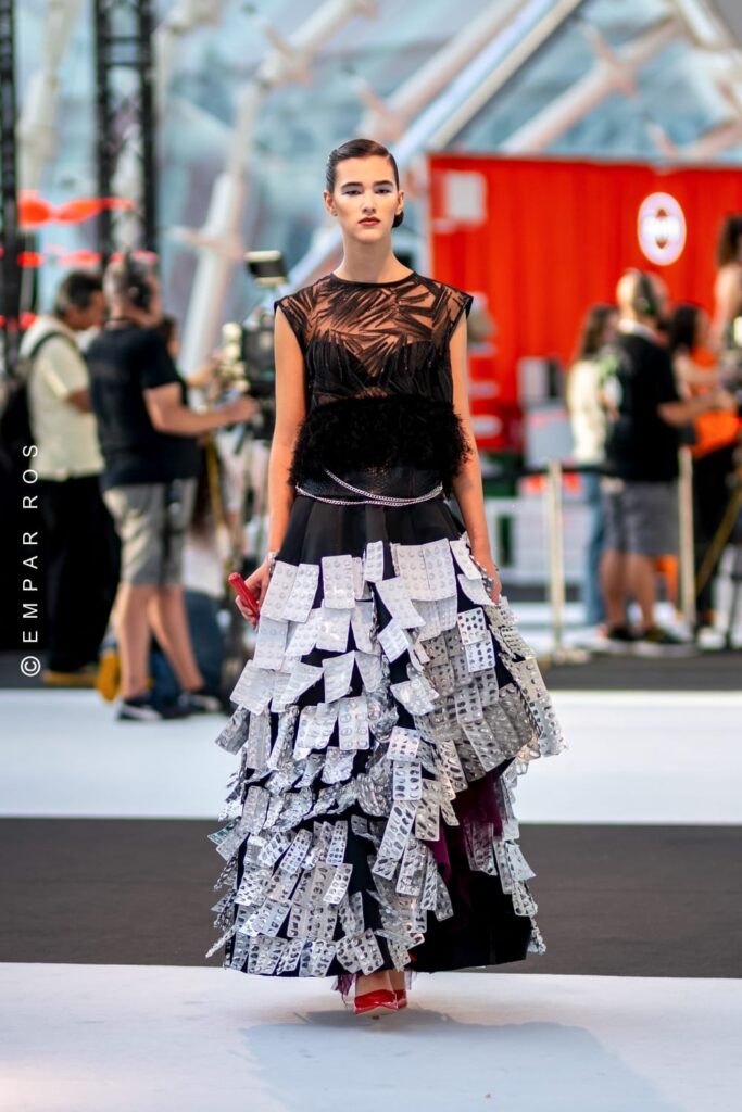 Una colección en la que cada prenda está elaborada con materiales reciclados y procesos sostenibles, reinterpretando el sacrificio no solo como entrega espiritual, sino también como una llamada a la responsabilidad con la tierra y con el propio arte de crear.