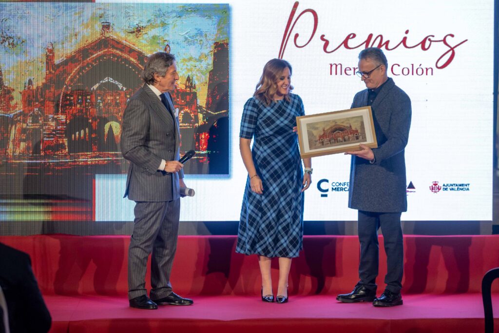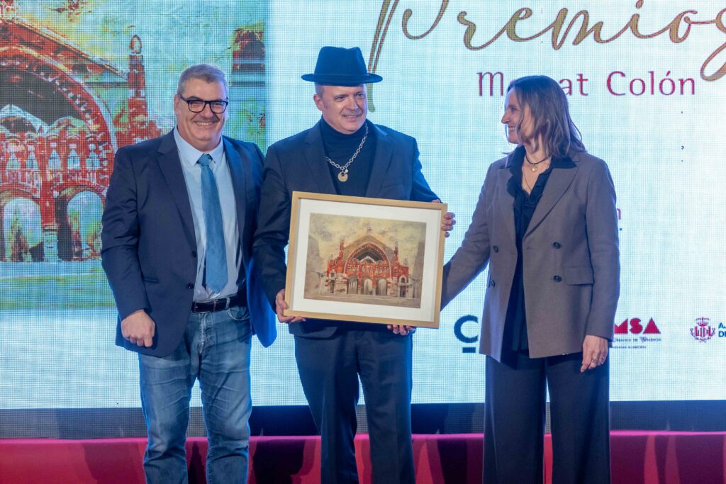 El Mercado de Colón se vistió de gala para rendir homenaje a valencianos que inspiran con su trabajo y su pasión. La ceremonia reunió a numerosos valencianos y vecinos y tuvo lugar en la plaza de acceso por Jorge Juan, con un escenario diseñado para la ocasión. Los primeros Premios Mercado de Colón reconocieron a figuras que han marcado la diferencia en comunicación, cultura, deporte, ciencia, empresa y gastronomía, en una noche cargada de emoción y orgullo para Valencia. Ángela Pérez, José Manuel Casañ, José Manuel Rodríguez Uribes, Pablo Motos y Ricard Camarena recibieron una serigrafía numerada de un cuadro especial del Mercado realizado por Horacio Silva. La alcaldesa de Valencia y la familia del arquitecto creador del edificio, Francisco Mora, recibieron un premio especial.