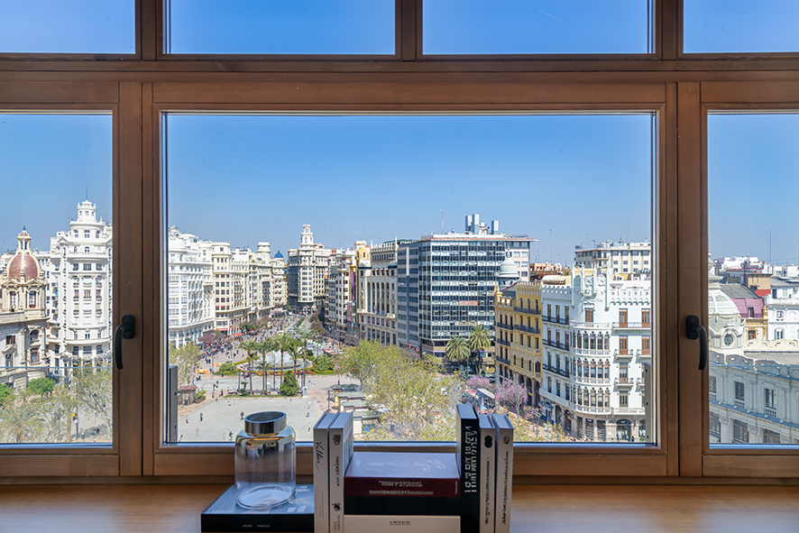 Ubicado en la emblemática Plaza del Ayuntamiento, ha sido cuidadosamente renovado preservando su esencia original. Destaca por su estilo Art Déco, su espacio gastronómico Soul of 1927, inspirado en los bistrós franceses, y su impresionante azotea con vistas panorámicas del skyline de Valencia