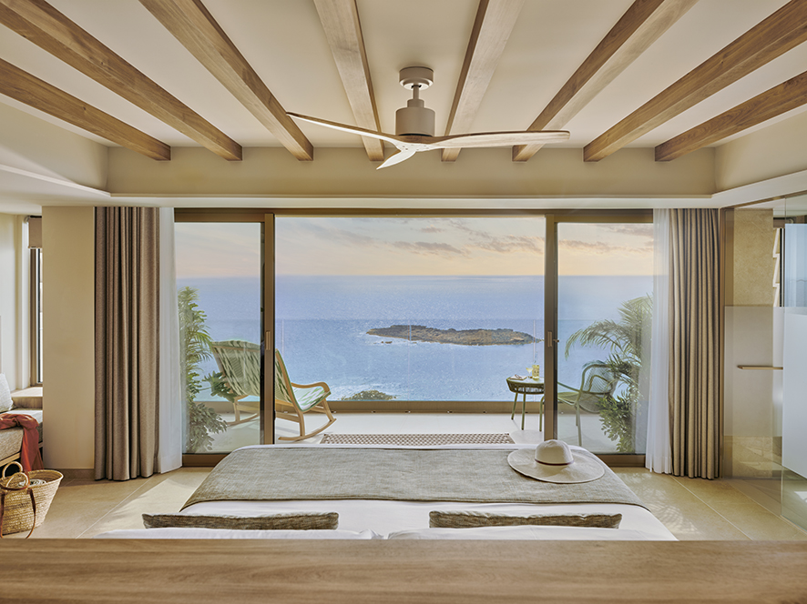 Su diseño, inspirado en las texturas y colores del Mediterráneo y en la tradición salinera de la zona, apuesta por materiales naturales y por la artesanía local, dando lugar a espacios luminosos y serenos que conectan con la esencia isleña. Todas las habitaciones cuentan con terraza y vistas al mar, reforzando esa conexión directa con el entorno que define la identidad del establecimiento.
