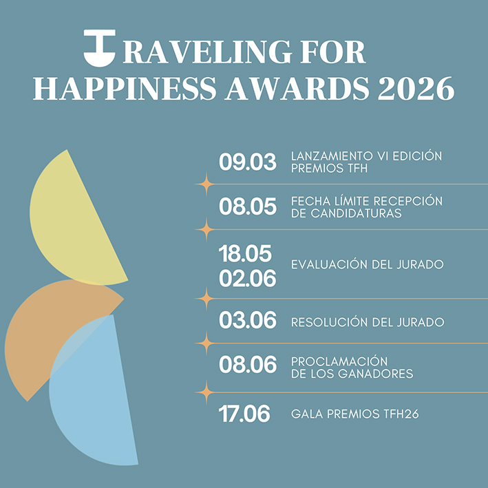 La Asociación Empresarial Hotelera de Madrid (AEHM) y Connecting Heads han abierto el plazo de recepción de candidaturas para la VI edición de los Premios Traveling for Happiness, los galardones creados en 2020, que celebran las mejores prácticas en sostenibilidad y responsabilidad social corporativa, dentro del sector turístico a nivel internacional. El plazo de participación se extenderá hasta el viernes 8 de mayo y los aspirantes podrán presentar su candidatura a través de la página web www.travelingforhappiness.com.