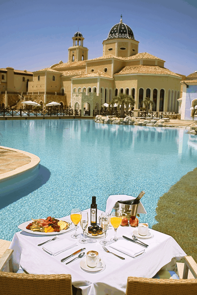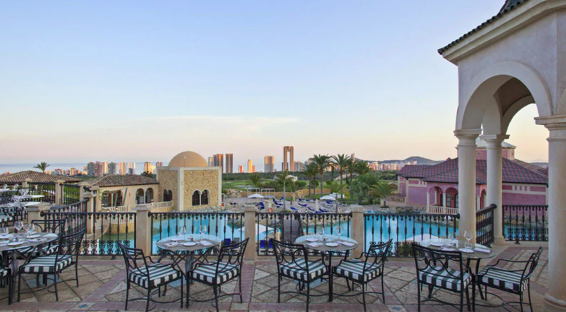 Sin duda su gastronomía es una buena razón para acudir al Meliá Villaitana, entre Benidorm y Altea, pero no es la única razón que animará a muchos a alojarse por unos días en este espectacular resort y disfrutar del encanto de sus 25 edificios con una arquitectura original donde se combinan recuerdos medievales, aires mediterráneos, un original claustro con naranjos y hasta una iglesia en su plaza central. También ofrece hasta seis sinuosas piscinas, alguna con arena de playa o con agua climatizada y con espacio para hacer kilómetros nadando, jugar al golf en sus dos campos de categoría internacional, utilizar algunas de las varias pistas de tenis y pádel o acudir a un gimnasio perfectamente equipado y donde poder experimentar las ventajas del yoga, taichi, pilates o stretching. Y para relajarse, hay un spa de 1.200 metros cuadrados dedicado al cultivo del cuerpo, equilibrio de la mente y purificación del alma.