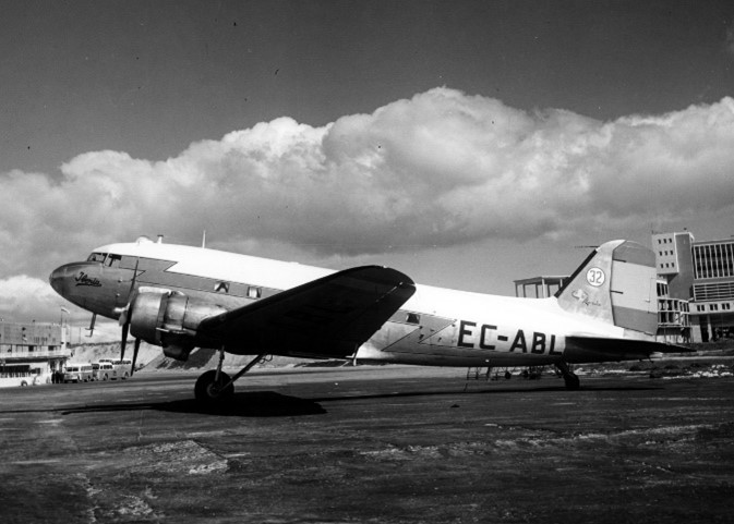 El primero de los vuelos entre ambas ciudades se realizó a bordo de un Douglas DC-3, un modelo de avión bimotor de ala baja con capacidad para hasta 28 pasajeros y una tripulación de entre 2 y 3 personas. Este avión alcanzaba una velocidad de crucero de 280 km/h y, al no estar presurizado, volaba por debajo de los 4.000 metros de altura.