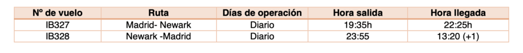 - El primer vuelo ente Madrid y Newark será el 29 de marzo, coincidiendo con el inicio de la temporada de verano