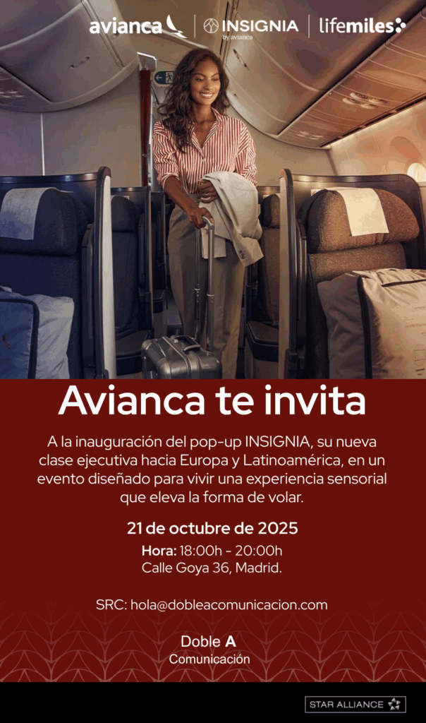 “Con INSIGNIA buscamos no solo elevar la experiencia de volar, sino también consolidar a Avianca como referente en el segmento premium, conectando dos regiones clave para el turismo y los negocios”, señaló Rolando Damas, director de ventas de Avianca para Europa y Norteamérica.