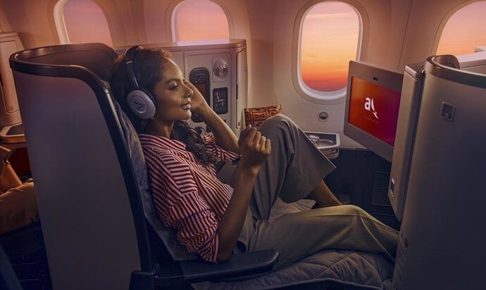 Asientos Flatbed con reclinación de 180°, mayor privacidad y pantallas individuales de 16”.