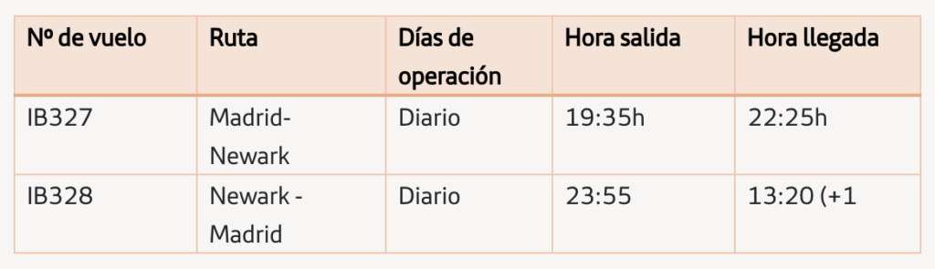 - El primer vuelo ente Madrid y Newark será el 29 de marzo, coincidiendo con el inicio de la temporada de verano