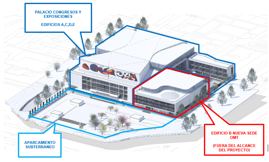 La rehabilitación de los edificios A y C se suma a las obras en marcha del Edificio B, que albergará la futura sede permanente de ONU Turismo (antes OMT). Con esta actuación integral del Complejo de la Castellana, Turespaña refuerza el papel del España en el centro de referencia en el turismo global y congresual.