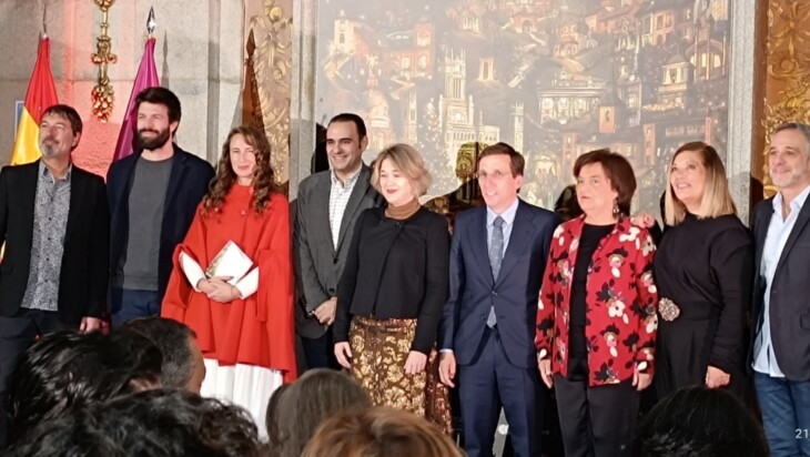El Coro de Voces Graves de Madrid se asomó a los balcones de la Casa de la Villa para anunciar a los madrileños y los turistas allí presentes que la Navidad ya ha llegado a la ciudad. Ya en el interior del Patio de Cristales se presentó el cártel navideño, que este año cuenta con la peculiaridad de haber sido diseñado por un artista gallego y que refleja 73 referencias Madrid. Al alcalde lanzó el reto de encontrar esos 73 símbolos de la ciudad, y alguno gallego que se coló en el cartel.