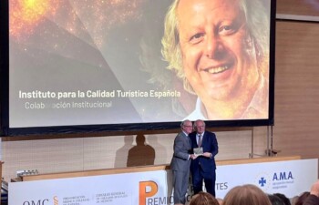 El presidente del Instituto para la Calidad Turística Española y la Sostenibilidad, Miguel Mirones, recibió de manos del presidente de …