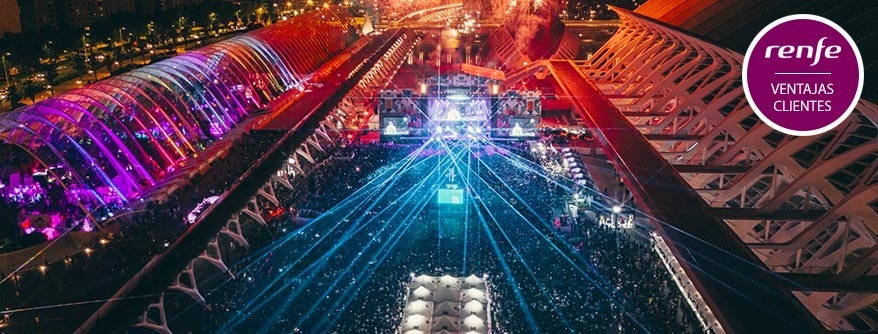 Gracias a este acuerdo, Renfe se compromete a ofrecer a todos los asistentes del Festival, que se celebrará los días 27 y 28 de junio en la Ciudad de las Artes y las Ciencias de València, un descuento del 15 % sobre el precio de los billetes de AVE, Avlo, Alvia, Euromed e Intercity, en cualquiera de las opciones disponibles (Básico, Elige, Elige Confort y Prémium), en todos los trayectos de recorrido nacional con origen y/o destino València.