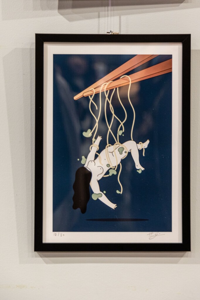 La figura femenina, el color, la gastronomía japonesa y la mezcla de estilos gráficos son los elementos que confluyen para que el ilustrador Hugo Giner pueda crear historias visuales que despiertan la imaginación del espectador. Su exposición “Otros Mundos” acaba de inaugurarse en Las Cervezas del Mercado de Colón y permanecerá hasta abril.